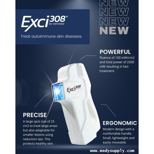 • Aerolase Exci308 is a high-performance laser used primarily in dermatology for treating a variety of skin conditions, such as psoriasis, vitiligo, eczema, and other inflammatory or pigmentary disorders.